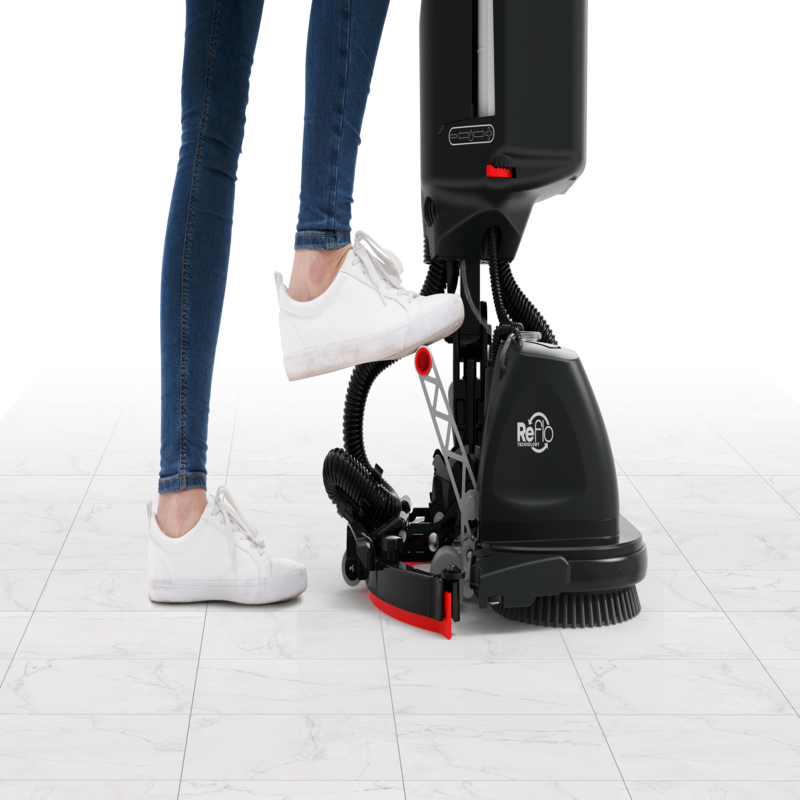Lightweight and easy to use, the 440NX leaves floors clean, dry, safe and streak-free, whilst reducing labour costs by 70% and water use by 80%.* One-pass cleaning performance is achieved by applying brush pressure, powerful drive motors and
